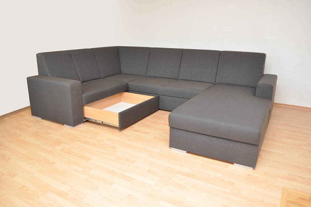 V sedačke Lugano je zabudovaný výsuvný úložný priestor.